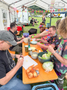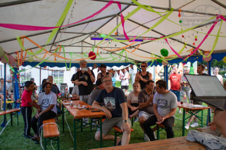 Im Anschluss hatten sich alle ein kühles Getränk und ein leckeres Essen mehr als redlich verdient. Serviert wurde frisches Fleisch vom örtlichen Metzger in verschiedenen Ausführungen, begleitet von einer reichhaltigen Auswahl an Salaten.