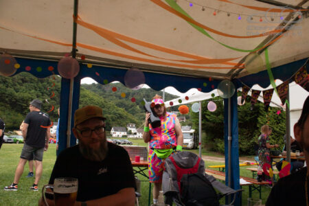 Am Donnerstag traf wie jedes Jahr der Frühtrupp ein, um den Platz einzurichten. Diesmal waren es echt schon eine Menge Leute, die mitgewirkt haben. Also wurden, wie all die Jahre zuvor, ganz chaotisch die Clubzelte aufgestellt, die Tische und Bänke eingeräumt, sowie der Getränkeanhänger in Position gebracht. Danach wurde geklönt, gegrillt und das erste Bier gezapft.