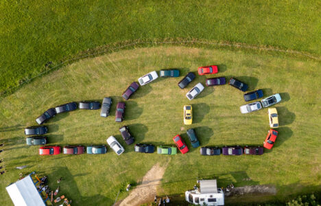 Stundenlanges Rangieren, unermüdliches Umherfahren, immer und immer wieder wurde umgeparkt, Zentimeterarbeit und das ständige feine Nachjustieren der Fahrzeugwinkel bestimmten das Bild. Auto um Auto wurde das Bild schärfer. Nicht jeder Handgriff saß direkt, aber jede Korrektur brachte uns näher an die Perfektion. Drohnen stiegen auf, Akkus wurden verheizt, um dem am Computer gezeichneten auf dem Platz mit echten Autos umzusetzen. Immer und immer wieder wurde das aktuelle Luftbild mit der Zeichnung verglichen, bis dann alles exakt zusammen passte.
