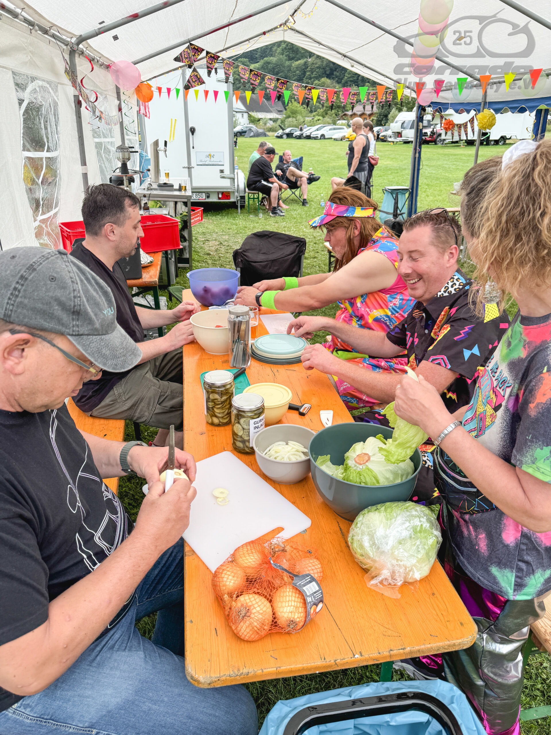 Zum 25. Clubjubiläum stand alles im Zeichen der 90er. Neben passender Deko für das Clubzelt haben sich auch fast alle Mitglieder entsprechend gestyled