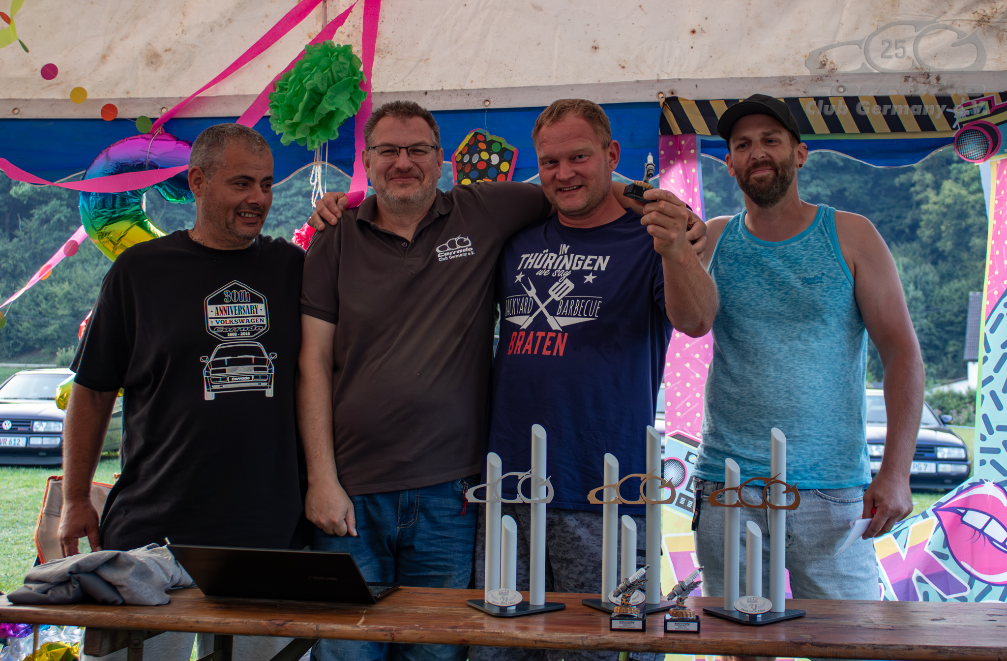 Da der Corrado Club Germany e.V. verlässlich jedes Jahr mindestens ein Clubtreffen abhält, ist das 25. Jahretreffen auch der 25. Geburtstag des Clubs. Vom Datum her konnte es auch nicht besser passen, der Club wurde am 05.08.2000 gegründet und am 08.08,2025 wurde das Jubiläum gefeiert.